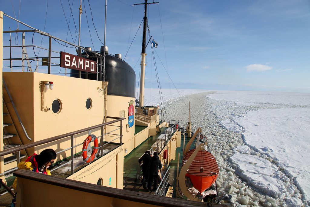 Step 1.  The sea in Arctic regions like Kemi, Finland is frozen for most of the winter, so you must locate an Arctic Icebreaker such as the Sampo Ice Breaker to break through the ice to go swimming.