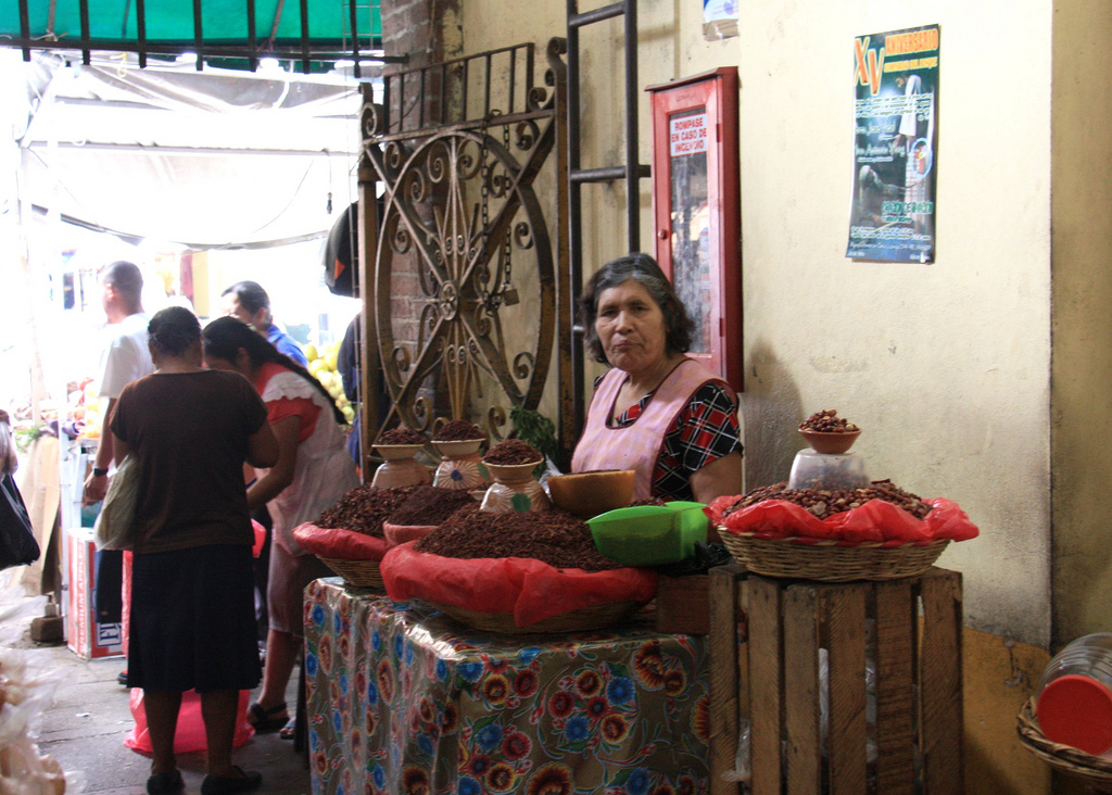 Chocolate lovers will be in heaven in Oaxaca. The chocolate sold is locally produced, freshly ground and minimally processed. For a delicious treat at the market try a creamy hot chocolate made with milk or water served with a side of mini pan de muerto. Afterwards head over to Mina Street, coined chocolate street, to visit one of the local purveyors of chocolate. Visitors can watch as the cocoa beans are ground in large grinders into a rich creamy chocolate paste to later be made into bars or mole. This is a great place to purchase fresh chocolate bars for souvenirs or to eat.